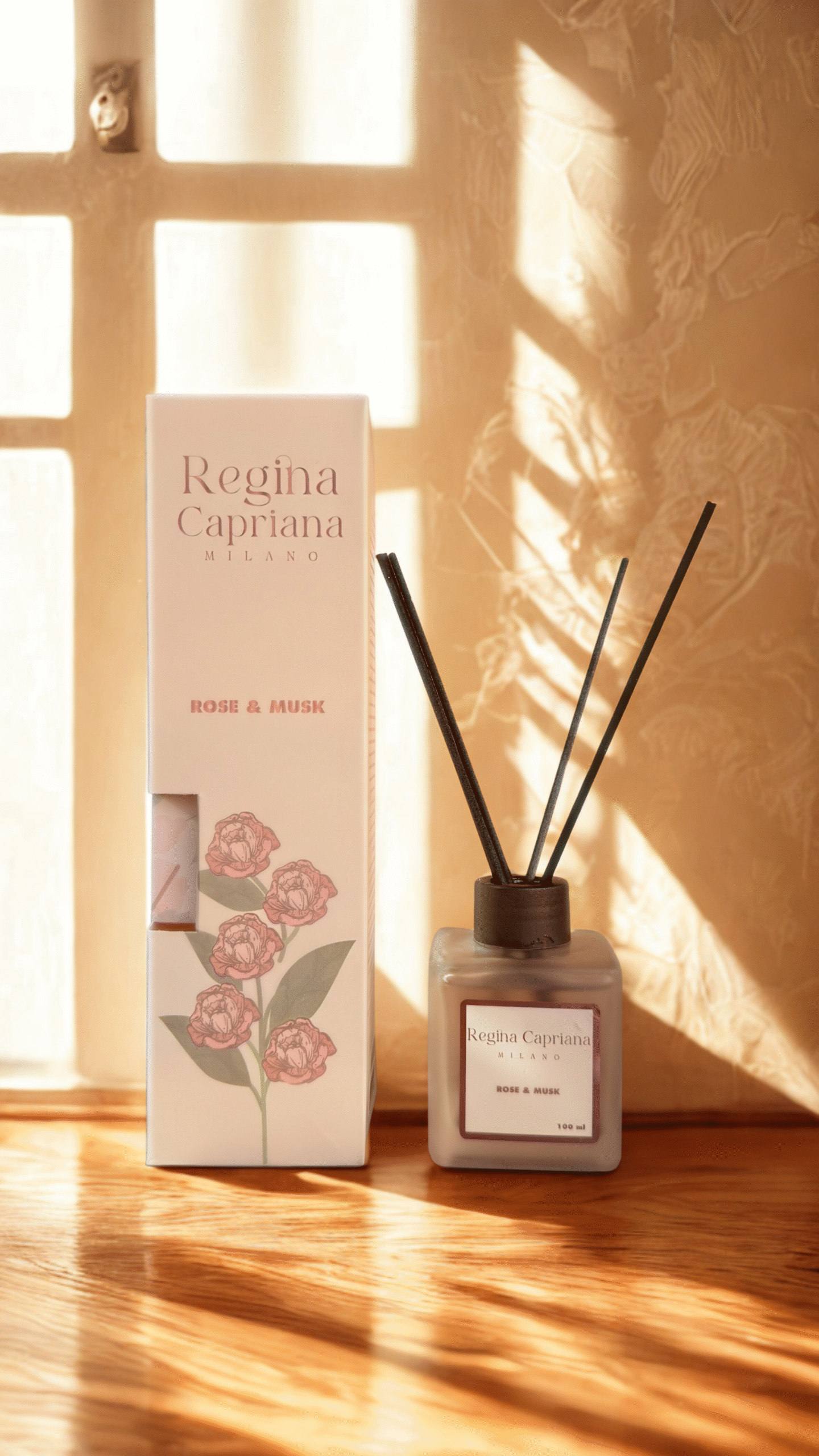 Regina Capriana’s Rose & Musk room fragrance is inspired by a tradition of elegance that has endured for centuries.