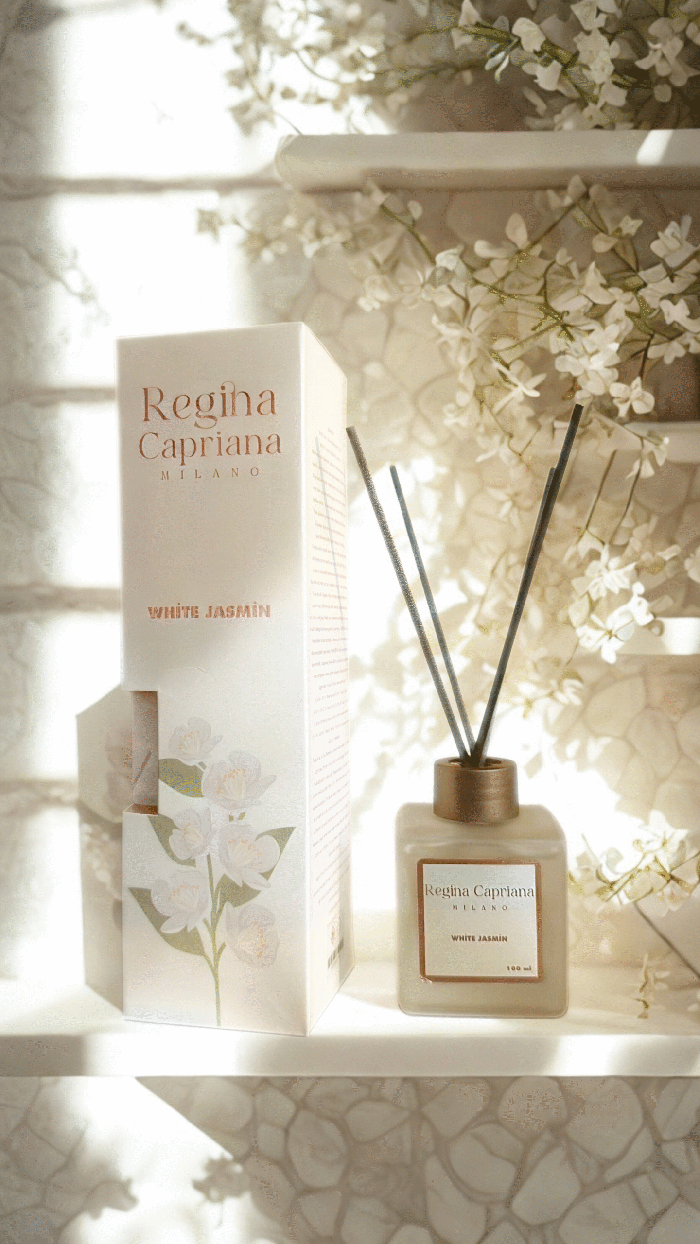 Regina Capriana’s White Jasmin room fragrance is inspired by the delicate elegance of jasmine in its purest form.
